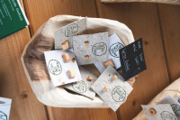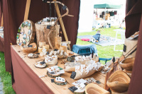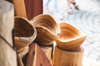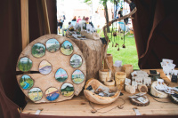 Holky, co pořádaly Šumava Design, mě přivítaly a během chvíle jsem měla svůj krásný stánek na super místě! Páni, v to jsem ani nedoufala. Přinesla jsem si své 4 bedny a špalek a začalo aranžování, které jsem si natrénovala ve sklepní dílně a jehož výroba mi zabrala převážný čas minulých týdnů. Nakonec jsem přidala prkénko s vygravírovanými iniciály mého podnikání a už zbývala jen snídaně, káva a trhy mohly začít.